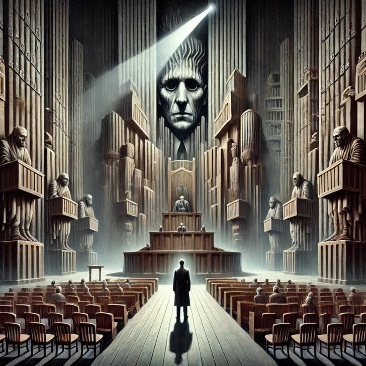 El tribunal, aunque implacable, parece contradictorio. Mientras el capellán asegura que nada espera del acusado, otras escenas muestran órdenes, reproches y manipulaciones, como la cita en la Catedral de San Vito. Kafka, riguroso en su lógica, parece presentar estas incoherencias no como errores, sino como perspectivas divergentes de un sistema que aplasta cualquier lógica humana.